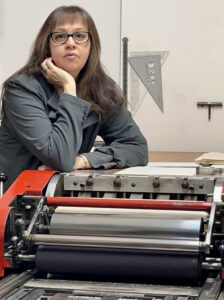 A native New Yorker born in Brooklyn, Mindy has numerous years as an art educator and university art professor (including The New School Writing and Poetry Program, the Rare Book and Special Collections program at the Palmer School of Library Science, the School of Visual Arts, Women’s Studio Workshop, Pyramid Atlantic, the Center for Book Arts, the Metropolitan Museum of Art, Florida Atlantic University, New York University, the San Francisco Art Institute, Hofstra University’s College for Continuing Education, and Cornell University’s Experimental College Program). Her teaching archives with approximately a thousand pieces of ephemera and books from over a decade of sharing the traditions of printing and the book with many hundreds of students at her New York City Studio on the Square, are held at Columbia University’s Butler Library, NYC.