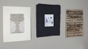 Intaglio prints with hand painting on white, tan, and grey cotton rag papers, 40″ x 44″