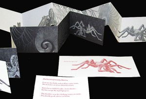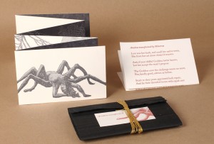 Letterpress printed text, Images digitally printed; Red leather spine, Etched metal covers.